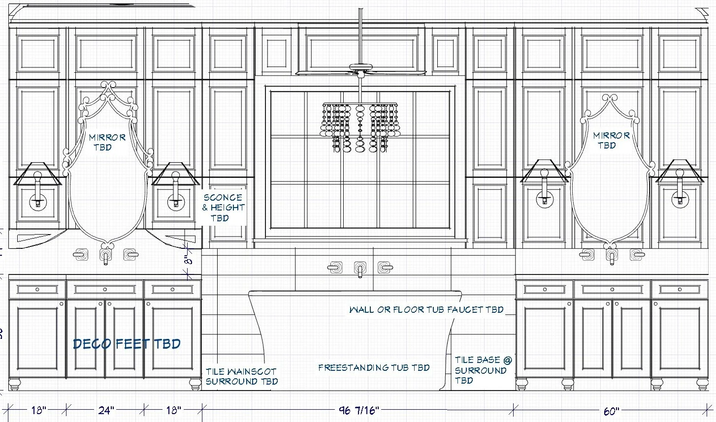 The architectural space is completed with finishes, fixtures, & lighting - including flooring, counters, wall materials, and plumbing fixtures- along with layered and well-curated lighting. Digital concept boards and real material samples allow clients to see and feel the details of their new spaces. Avoid construction delays and cost overages by planning a detailed project - design drawings to complete specifications.